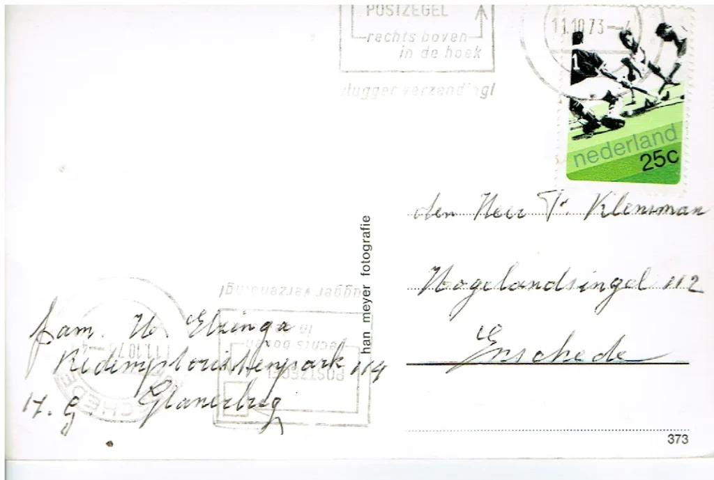 De verzendkosten voor die kaart waren in die jaren 8 cent en dat is nu wel andere koek….