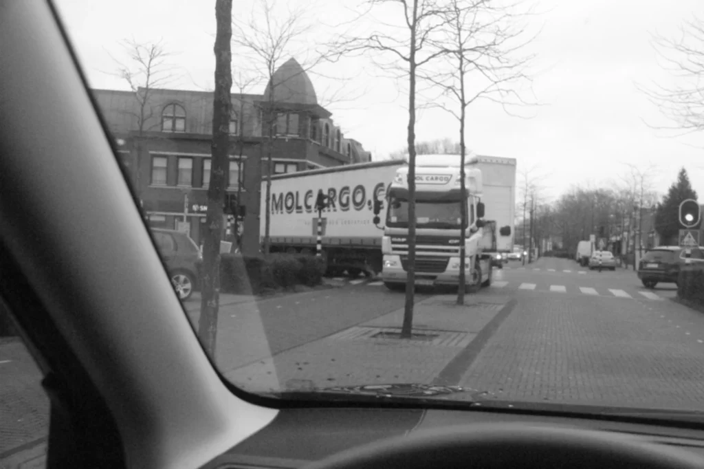 Nog maar net! Knap staaltje chauffeurswerk trouwens.