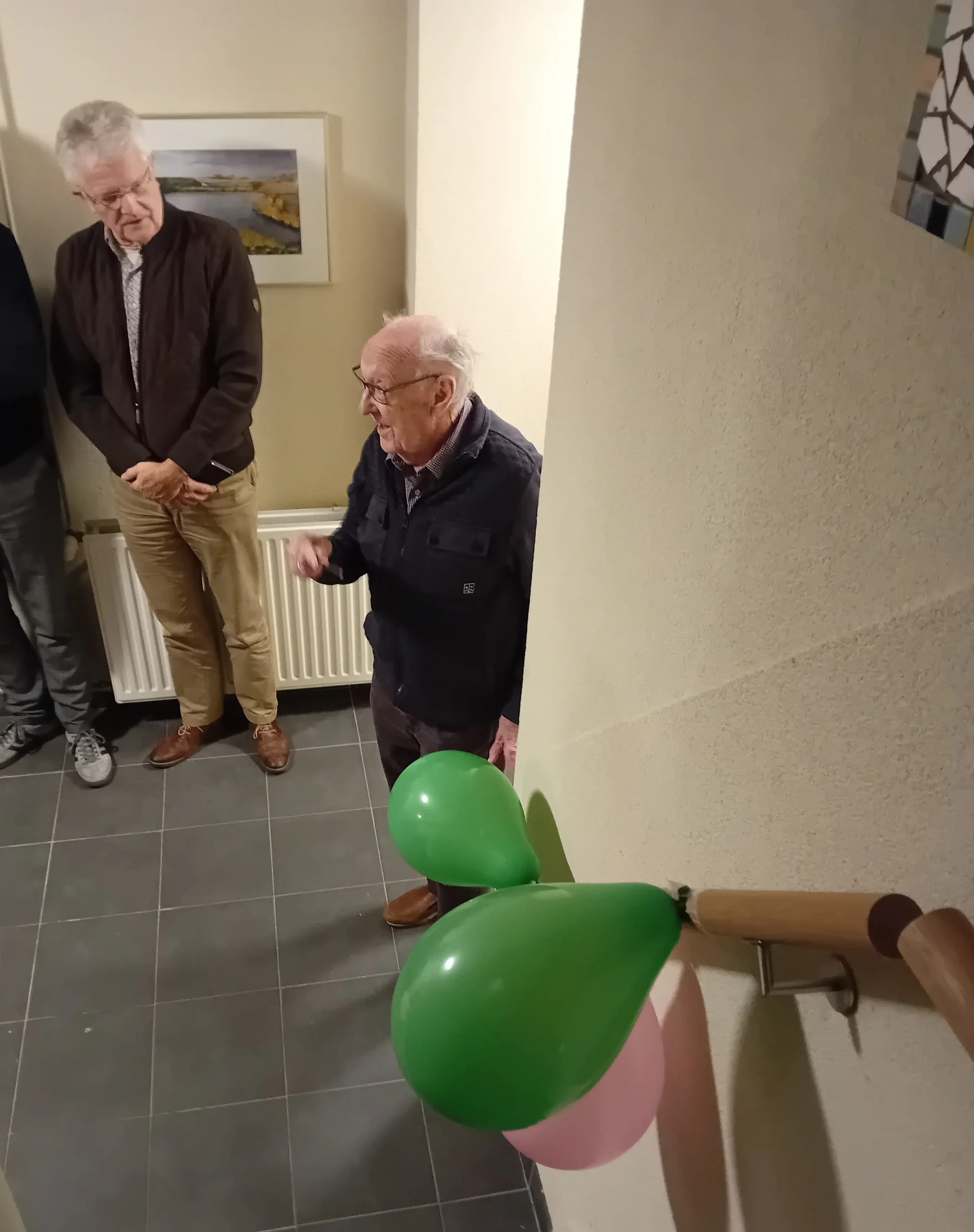 Op vrijdag 17 oktober hebben we van de opening van ons nieuwe archief in het Parochiehuis een feestje gemaakt. Betsie Veldhoes (in wie menigeen een bekende dachten te zien) heette namens de HKG iedereen welkom en bedankte al degenen die een bijdrage hebben geleverd aan de opknapbeurt van de ruimtes. Ons oudste lid, Frits Hardick, mocht de ballonnen doorprikken die de toegang tot het archief versperden en toen kon de ruimte worden bekeken. Met een hapje en een drankje werd er geproost op een mooie toekomst voor de 19-jarige HKG.